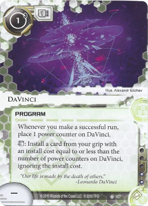 Whenever you make a successful run, place 1 power counter on DaVinci.