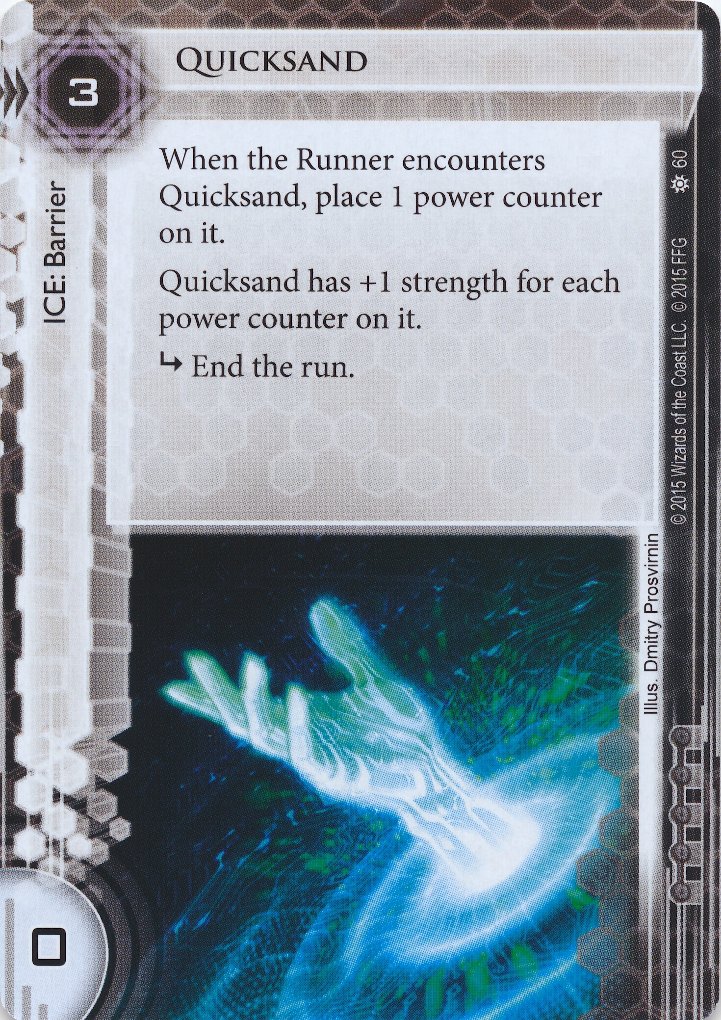 | When the Runner encounters Quicksand, place 1 power counter on it. Quicksand has +1 strength for each power counter on it. | |